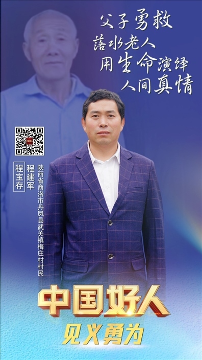 程寶存,男,1953年8月生;程建軍,男,1978年6月生。二人為父子關系,系陜西省商洛市丹鳳縣武關鎮(zhèn)梅莊村村民。2021年9月,父子兩人協(xié)力救助落水老人,父親程寶存不幸被水沖走獻出了寶貴生命。程建軍說:“這件事誰遇到都會去做的,我相信我爸也不會后悔自己的選擇。”