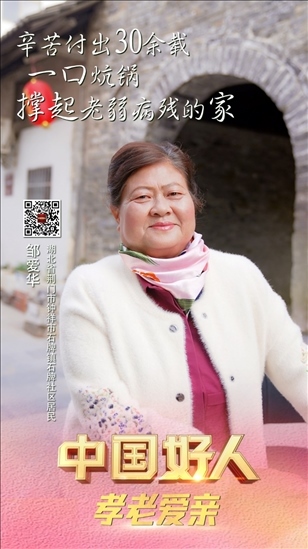 鄒愛華,女,1962年5月生,湖北省荊門市鐘祥市石牌鎮(zhèn)石牌社區(qū)居民。鄒愛華自幼腿部殘疾,她與聽障丈夫相攙相扶,支起一口燒鍋做蔥餅,20余年誠信經(jīng)營,供養(yǎng)兩個女兒完成學業(yè);她30余年無悔付出照顧殘疾親人,讓他們安心生活;她熱心幫助街坊鄰居,成為遠近有名的“街長”。