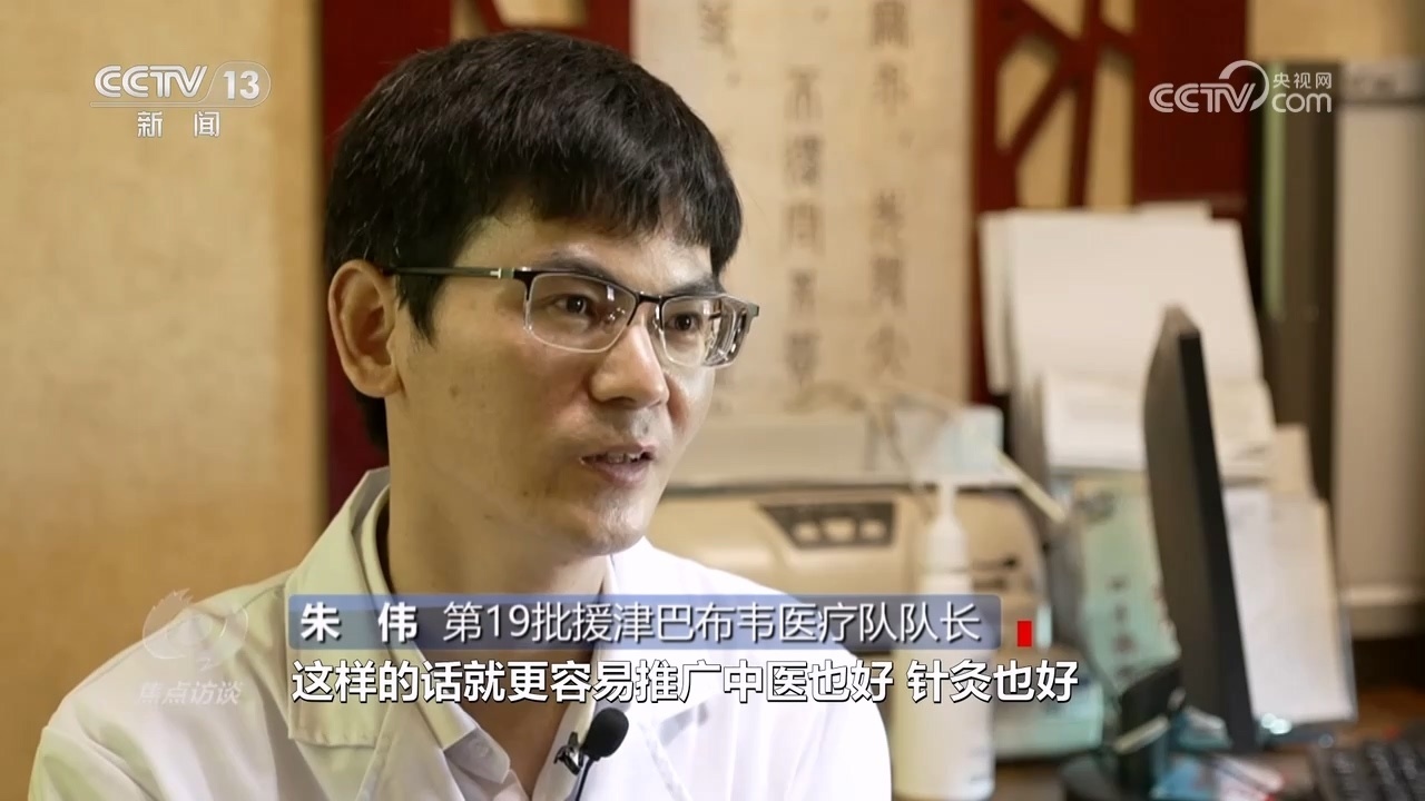 第19批援津巴布韋醫(yī)療隊(duì)隊(duì)長(zhǎng)朱偉:“病人到60個(gè)的時(shí)候,工作強(qiáng)度太大了。后來我就慢慢給他們預(yù)約,培養(yǎng)當(dāng)?shù)氐尼樉娜瞬牛@樣就更容易推廣中醫(yī)也好,針灸也好。去年,我在那里就培養(yǎng)了十個(gè)學(xué)員,他們自己能做。當(dāng)?shù)匾彩强吹街嗅t(yī)針灸的效果,所以他們很多人想學(xué)。”
