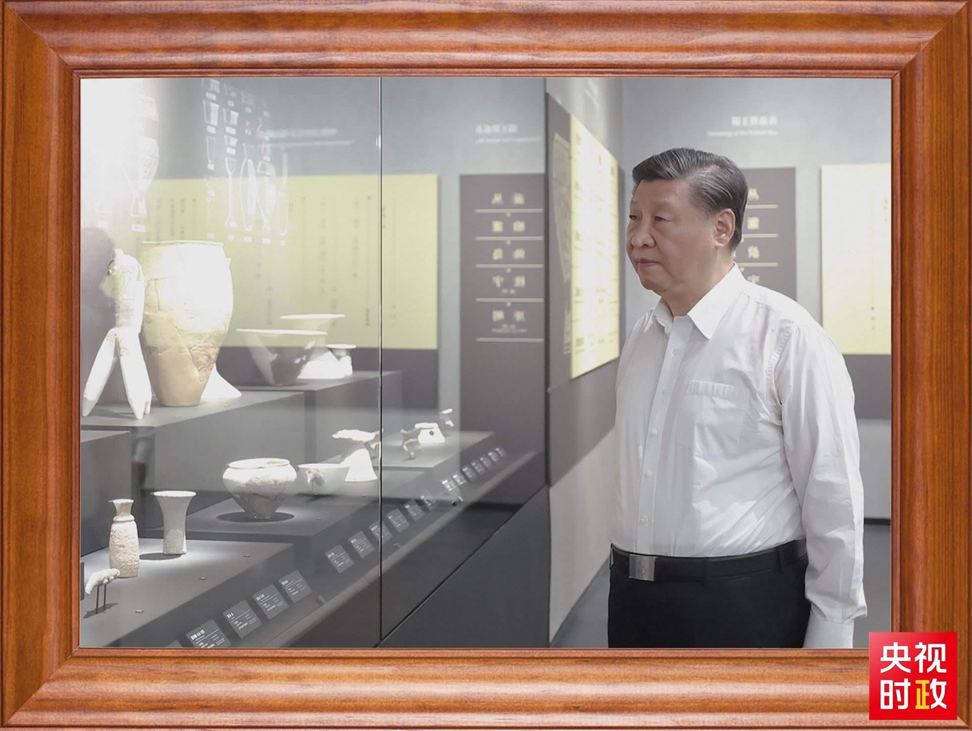 在習(xí)近平總書記的書架上,有這么一張照片,記錄著他的文化足跡——2023年7月26日,總書記來到位于四川省德陽市廣漢市的三星堆博物館新館,了解三星堆遺址發(fā)掘歷程和古蜀文明成果。