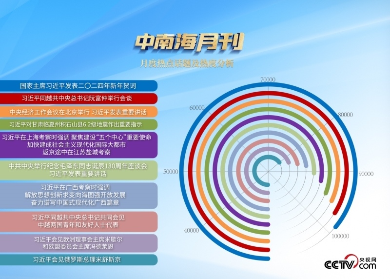 央視網(wǎng)《中南海月刊》運(yùn)用智能大數(shù)據(jù),帶您回顧總書記2023年12月的重要活動(dòng)和講話。