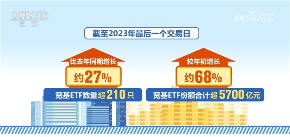 總臺央視記者 董彬:根據(jù)投資標的的不同,股票型ETF可以劃分為寬基ETF、行業(yè)ETF、主題ETF、風格ETF等。其中,寬基ETF是追蹤指數(shù)覆蓋面較廣泛、具有相當代表性的一類產(chǎn)品。我們通過數(shù)據(jù)分析發(fā)現(xiàn),2023年全年寬基ETF增幅較為明顯。