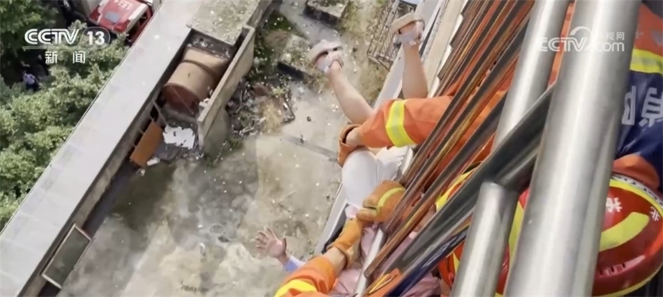 與此同時(shí),消防部門來(lái)到樓上,在用工具強(qiáng)行破門之后,快速來(lái)到陽(yáng)臺(tái),最終在多方力量的配合下,成功將被困的小女孩兒救下。