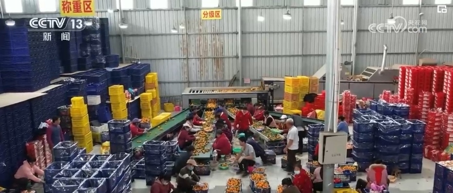 雙向奔赴的情誼在網(wǎng)上不斷發(fā)酵,也帶熱了砂糖橘的銷(xiāo)量。在荔浦這家選果廠車(chē)間,機(jī)械轟鳴不停運(yùn)轉(zhuǎn),一批批優(yōu)質(zhì)水果被分送到運(yùn)輸帶上,經(jīng)過(guò)裝筐、打包、貼標(biāo)簽、搬運(yùn)、裝車(chē),新鮮的水果被送往全國(guó)各地。