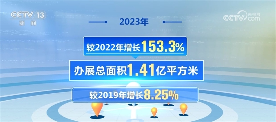 《中國展覽經(jīng)濟(jì)發(fā)展報(bào)告2023》統(tǒng)計(jì)數(shù)據(jù)顯示,2023年中國共舉辦經(jīng)貿(mào)類展會(huì)3923場,較2022年增長117.1%,較2019年增長10.6%;辦展總面積1.41億平方米,較2022年增長153.3%,較2019年增長8.25%。經(jīng)貿(mào)類展會(huì)數(shù)量和展出面積超越疫情前水平,展覽業(yè)呈現(xiàn)全面恢復(fù)態(tài)勢。