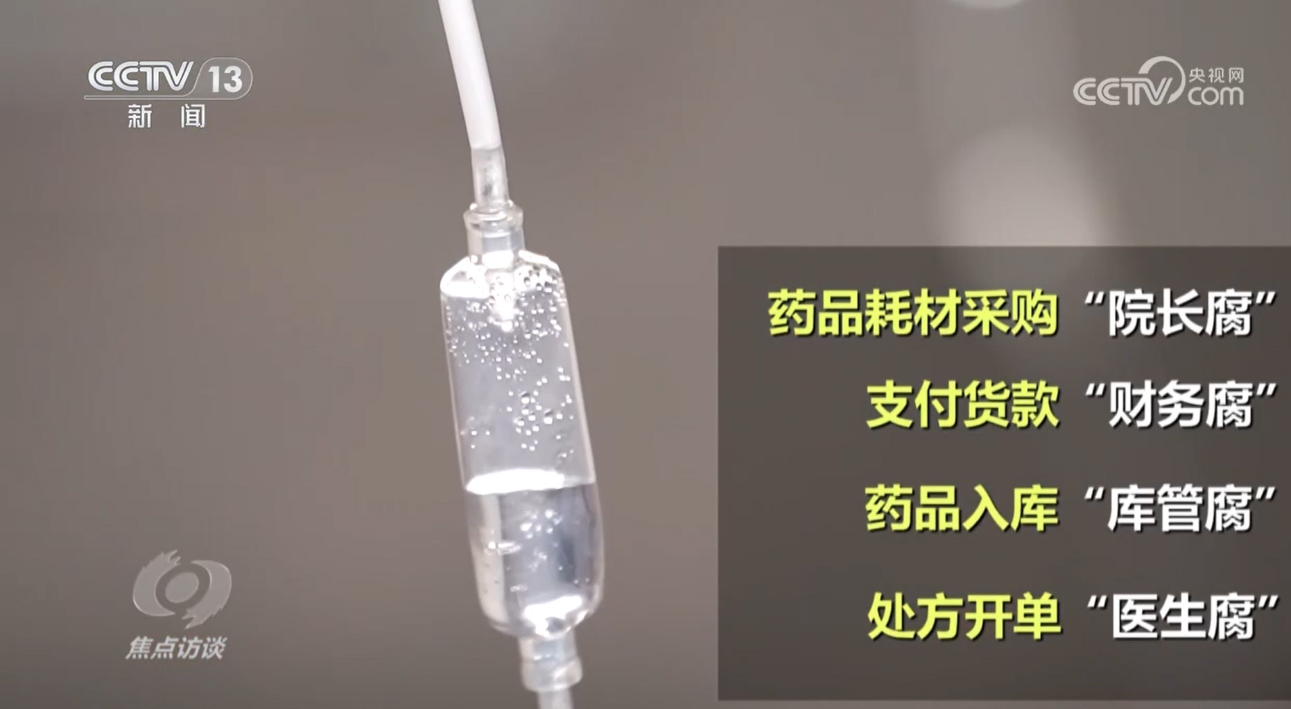 李玲:“它暴露出來的,以藥養(yǎng)醫(yī)、以耗材器械養(yǎng)醫(yī)補(bǔ)醫(yī)這個(gè)現(xiàn)象層出不窮。腐敗來源其實(shí)是在于虛高了流通領(lǐng)域的價(jià)格,一個(gè)出廠價(jià)30多塊錢的藥,到消費(fèi)者手上變成100多塊錢,然后用虛高的價(jià)格給各路人馬分配?!?
