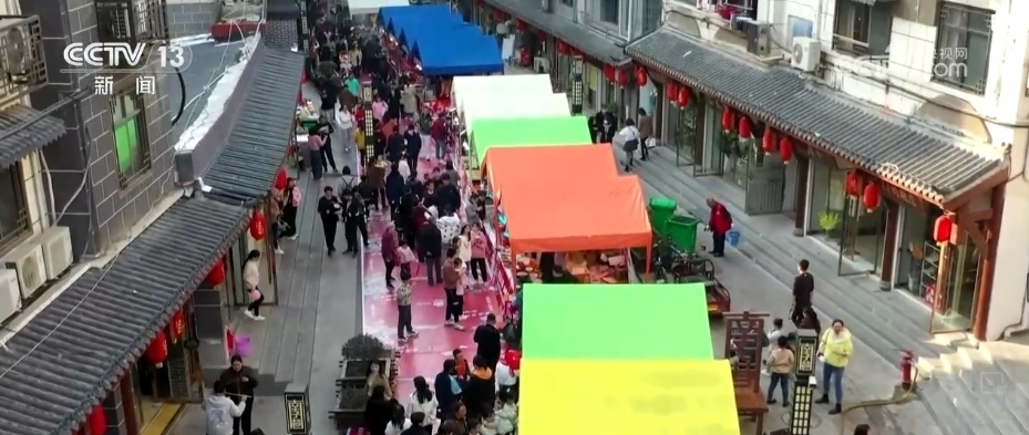 臨近春節(jié),南子巷人頭攢動(dòng),天南地北的美食和當(dāng)陽(yáng)本地特色小吃匯聚在此,吸引了大量游客前來(lái)逛吃。