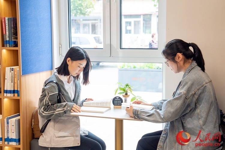 書吧里,兩位年輕的居民在享受安靜的閱讀時光。人民網(wǎng)記者 孫翼飛攝