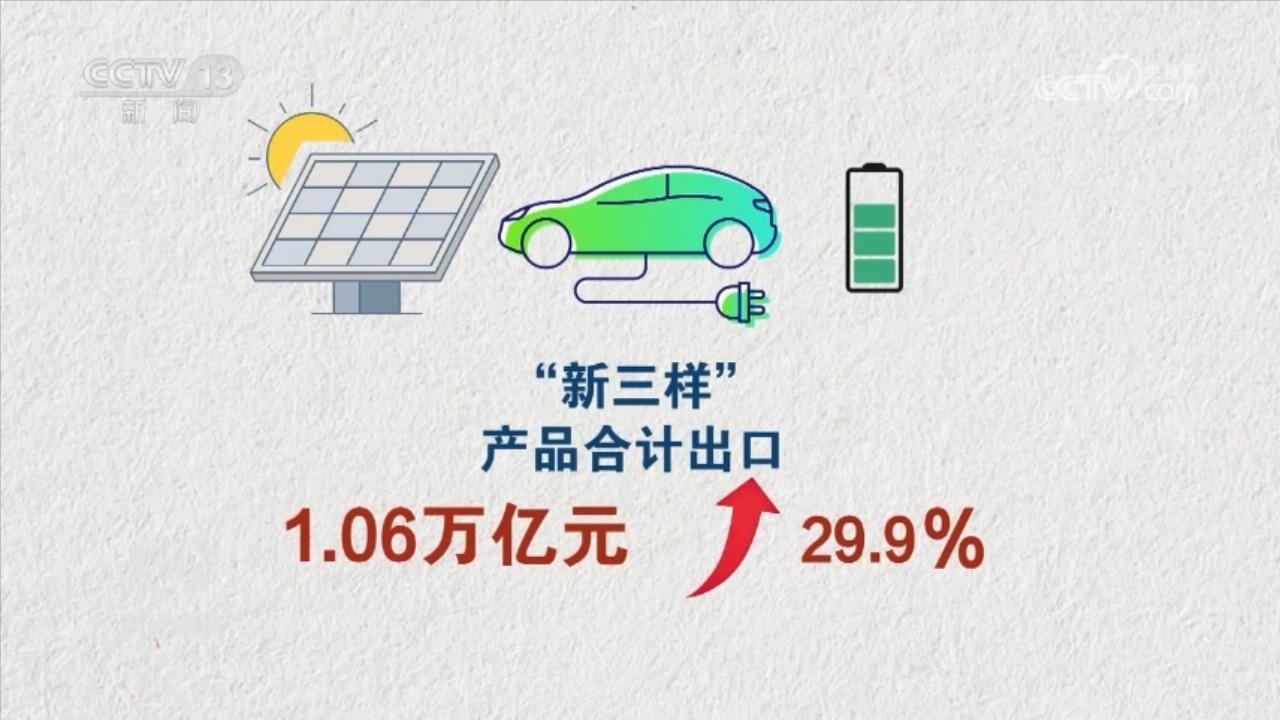2023年,我國出口機(jī)電產(chǎn)品13.92萬億元,增長了2.9%,占出口總值的58.6%;同期勞動密集型產(chǎn)品出口4.11萬億元,占出口總值的17.3%。機(jī)電產(chǎn)品中,電動載人汽車、鋰離子蓄電池及太陽能電池“新三樣”產(chǎn)品合計出口1.06萬億元,首次突破萬億元大關(guān),增長了29.9%。船舶、家用電器的出口分別增長35.4%和9.9%。
