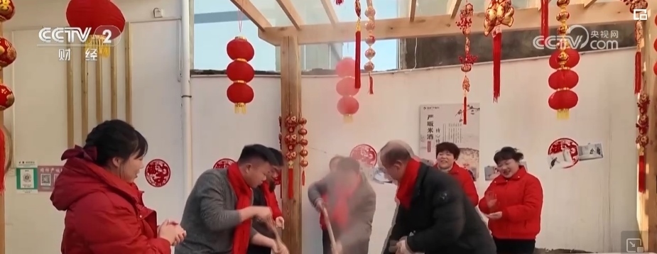 臘月里,糍粑香。打糍粑是湖北大悟縣過春節(jié)必不可少的年俗活動,糍粑也是大悟當?shù)剡^年必吃的一道美食。清洗灶臺、添柴燒火,把事先洗好、泡好的糯米倒入木甑中上鍋蒸煮。大約一個多小時后,熱氣騰騰的糯米飯蒸熟了。大家抬起木甑,將糯米飯倒入石臼中,反復捶打、揉捻, 寓意著來年風調(diào)雨順、平平安安。