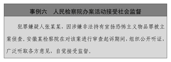 ——保障知情權(quán)、參與權(quán)。行政機(jī)關(guān)在查處恐怖活動(dòng)違法案件,作出行政處罰決定前,應(yīng)當(dāng)告知當(dāng)事人擬作出的處罰內(nèi)容及事實(shí)、理由和依據(jù),告知當(dāng)事人依法享有的陳述、申辯、要求聽證等權(quán)利。當(dāng)事人提出的事實(shí)、理由和證據(jù)成立的,行政機(jī)關(guān)應(yīng)當(dāng)采納。在恐怖活動(dòng)犯罪案件偵查中,嚴(yán)格限制采取強(qiáng)制措施后不通知家屬的例外情形,對通知家屬可能有礙偵查的,待有礙偵查情形消失后應(yīng)立即通知。在刑事訴訟中,恐怖活動(dòng)犯罪嫌疑人、被告人有權(quán)及時(shí)獲知被控告的罪名、案件情況及所享有的訴訟權(quán)利,有權(quán)申請回避,有權(quán)出席法庭,有權(quán)參加法庭調(diào)查、辯論和向法庭作最后陳述。