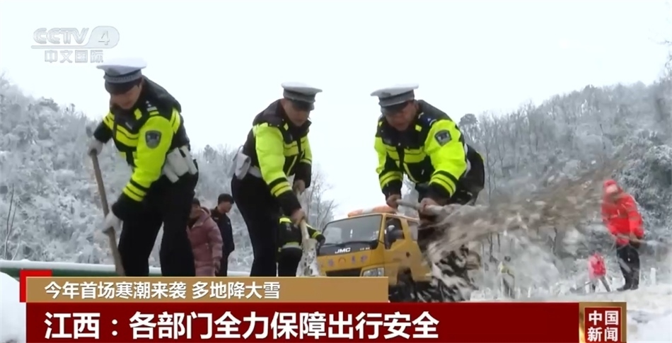 從21日開始,江西各地迎來了今年首場大范圍降雪天氣。德安縣迅速啟動惡劣天氣應(yīng)急預(yù)案,加強重點路口、路段的交通秩序管控。在梅嶺風(fēng)景區(qū),因為大雪、路面出現(xiàn)結(jié)冰,當(dāng)?shù)夭扇 跋迺r、限路、限流”的工作措施,對景區(qū)道路適時實施交通管制,保障游客出行游玩安全。在九江市武寧縣,工作人員清理倒伏的樹枝、撒融雪劑、鏟冰除雪、疏導(dǎo)交通,為過往的司機提供幫助。
