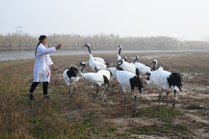 冬日清晨,遼闊的黃海濕地被成群丹頂鶴的高亢鳴叫喚醒。這里是“東亞-澳大利西亞”遷飛通道上數(shù)百萬(wàn)候鳥的“加油站”,每年有約400至600只野生丹頂鶴在此越冬。不久前美國(guó)加州州長(zhǎng)紐森到訪時(shí),一只陪同“參觀”的丹頂鶴意外走紅,以優(yōu)雅姿態(tài)為美麗江蘇代言。