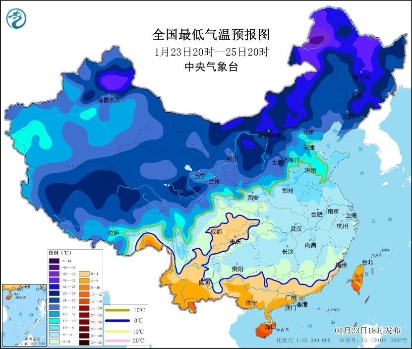 央視網(wǎng)消息:中央氣象臺1月23日18時繼續(xù)發(fā)布低溫藍色預(yù)警:預(yù)計,1月24日至25日,貴州、湖南中南部、江西中南部、浙江中南部、福建、廣東、廣西東部等地最低氣溫或平均氣溫較歷史同期偏低5℃以上,其中,貴州中東部、湖南中部、江西中南部、浙江南部、福建西部、廣東西南部、廣西東南部等地的部分地區(qū)偏低7℃以上,最低氣溫0℃線位于廣西北部、廣東北部一帶 。