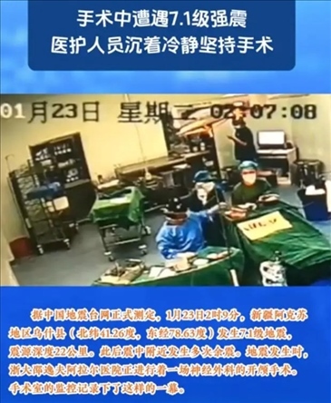 ·1月23日2時9分,阿克蘇地區(qū)烏什縣發(fā)生7.1級地震,地震發(fā)生時,浙大邵逸夫阿拉爾醫(yī)院正進(jìn)行一場神經(jīng)外科的開顱手術(shù)。