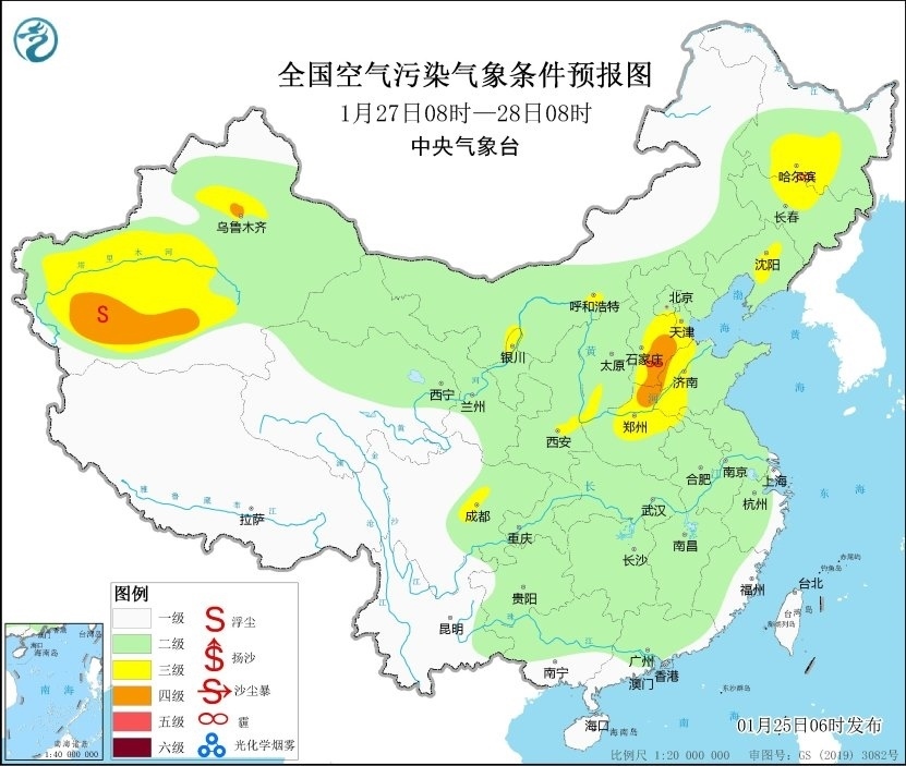 25日至27日,河北南部、河南東部、山東西部等地的部分地區(qū)有間歇性輕度霾。28日至30日,區(qū)域大部大氣擴(kuò)散條件有所轉(zhuǎn)差,有輕至中度霾,局地重度霾。