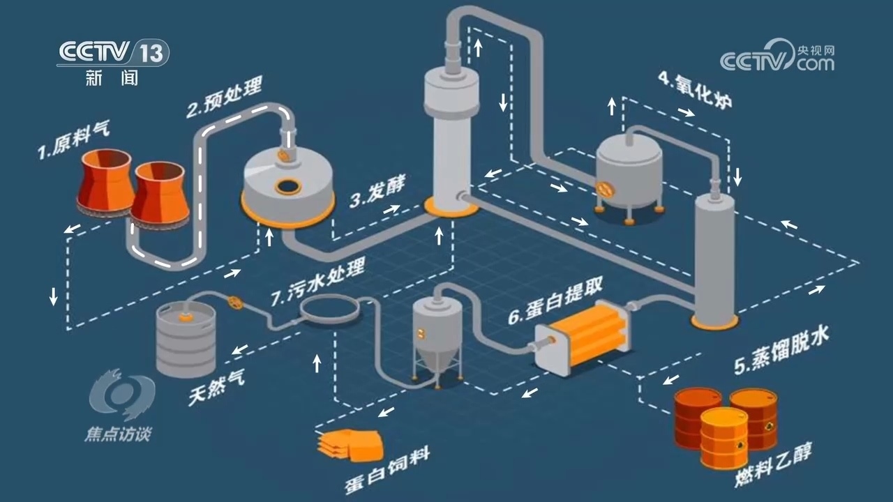 河北首朗新能源科技有限公司副總經(jīng)理?xiàng)钇G:“首先工業(yè)尾氣通過(guò)管道輸送到氣體預(yù)處理工段,經(jīng)過(guò)簡(jiǎn)單的壓縮和煤氣凈化,由管道輸送到核心發(fā)酵工段,氣體從發(fā)酵罐的底部進(jìn)入到頂部,單程只有幾十秒的時(shí)間?!?/p>