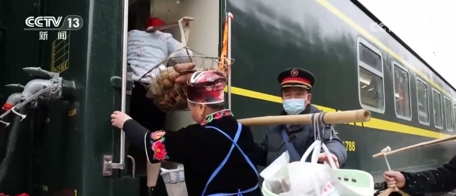 央視網消息:買年貨,除了商超、集市,批發(fā)市場,還可以在火車上。在貴州,往返于貴陽與玉屏之間的5639/5640次列車,開行至今已有20多年,方便了沿途10多個小站的村民出行。