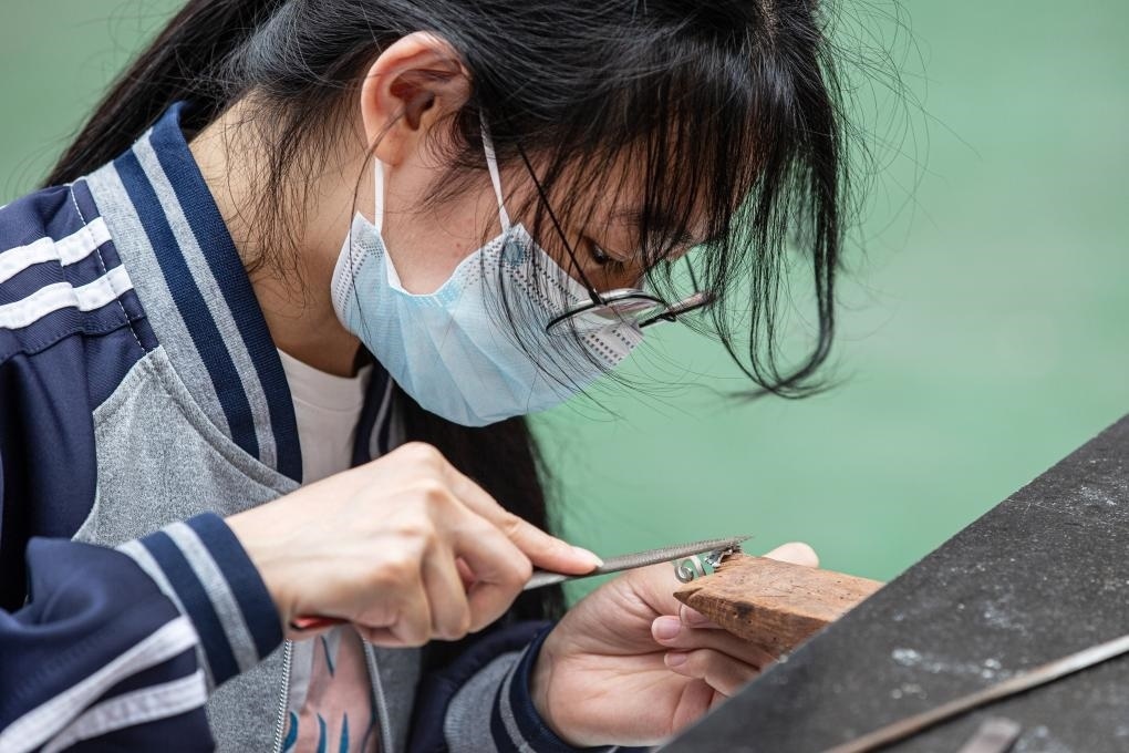 ?2023年11月29日,山東昌樂技師學(xué)院首飾設(shè)計與制作專業(yè)師生在練習(xí)專業(yè)技能。新華社記者張力元 攝