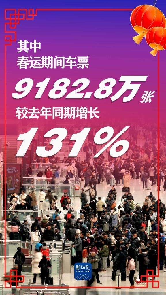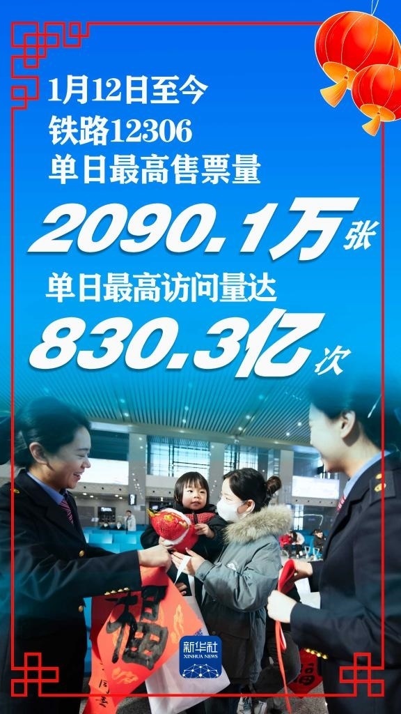 1月26日是春運(yùn)首日。記者從鐵路12306獲悉,今年春運(yùn)旅客購票出行需求旺盛,自1月12日鐵路春運(yùn)售票啟動以來,已累計(jì)發(fā)售火車票2.3億張。