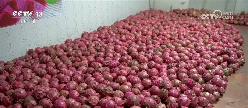 在安徽省肥東縣古城鎮(zhèn)的老張家庭農(nóng)場,一顆顆紅色的火龍果在藤枝上若隱若現(xiàn),迎來豐收。今年,火龍果打開了東南亞的新市場,銷量增長。如何讓大批量火龍果在采摘后、上市前“新鮮常駐”成了果品能否賣個好價錢的關鍵。為此,當?shù)剞r(nóng)業(yè)、林業(yè)、電力等部門為火龍果建立了專門的凍庫,對新采摘的火龍果進行轉運冷藏,延長火龍果銷售時間,助力果農(nóng)增收。