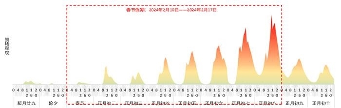 此外,春節(jié)期間出程與節(jié)日后期返程的潮汐特征明顯,9-12時和14-19時為易發(fā)生擁堵時段。