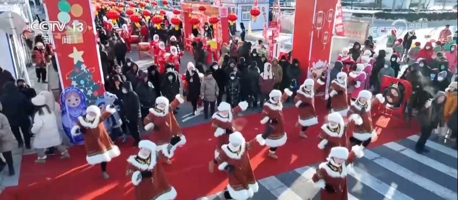 在黑龍江同江市的中俄年貨大集上,不僅有當(dāng)?shù)靥厣膬鲷~(yú)、凍梨、凍柿子,還有俄羅斯的大列巴、巧克力等美食。逛吃的同時(shí),現(xiàn)場(chǎng)還能欣賞各具特色的中俄文藝表演,讓趕集的人一飽眼福。