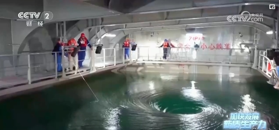 依靠首創(chuàng)的“船載艙養(yǎng)”模式,國信1號養(yǎng)殖工船,每年能實現(xiàn)3700噸高品質魚類和650噸優(yōu)質蛋白的供給。到了收獲的時候,艙內的大黃魚將通過吸魚泵和傳送帶直接轉運至休眠池,在那里進行快速降溫休眠鎖鮮。