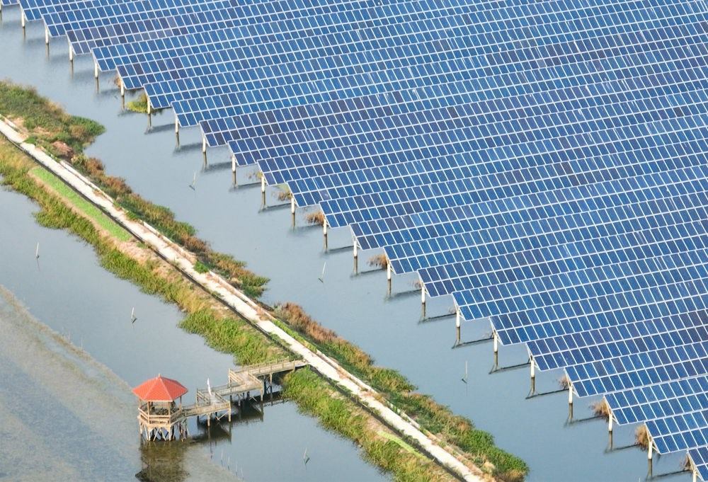 2023年10月11日拍攝的江蘇省興化市千垛鎮(zhèn)連片的光伏發(fā)電板(無人機(jī)照片)。新華社發(fā)(周社根 攝)