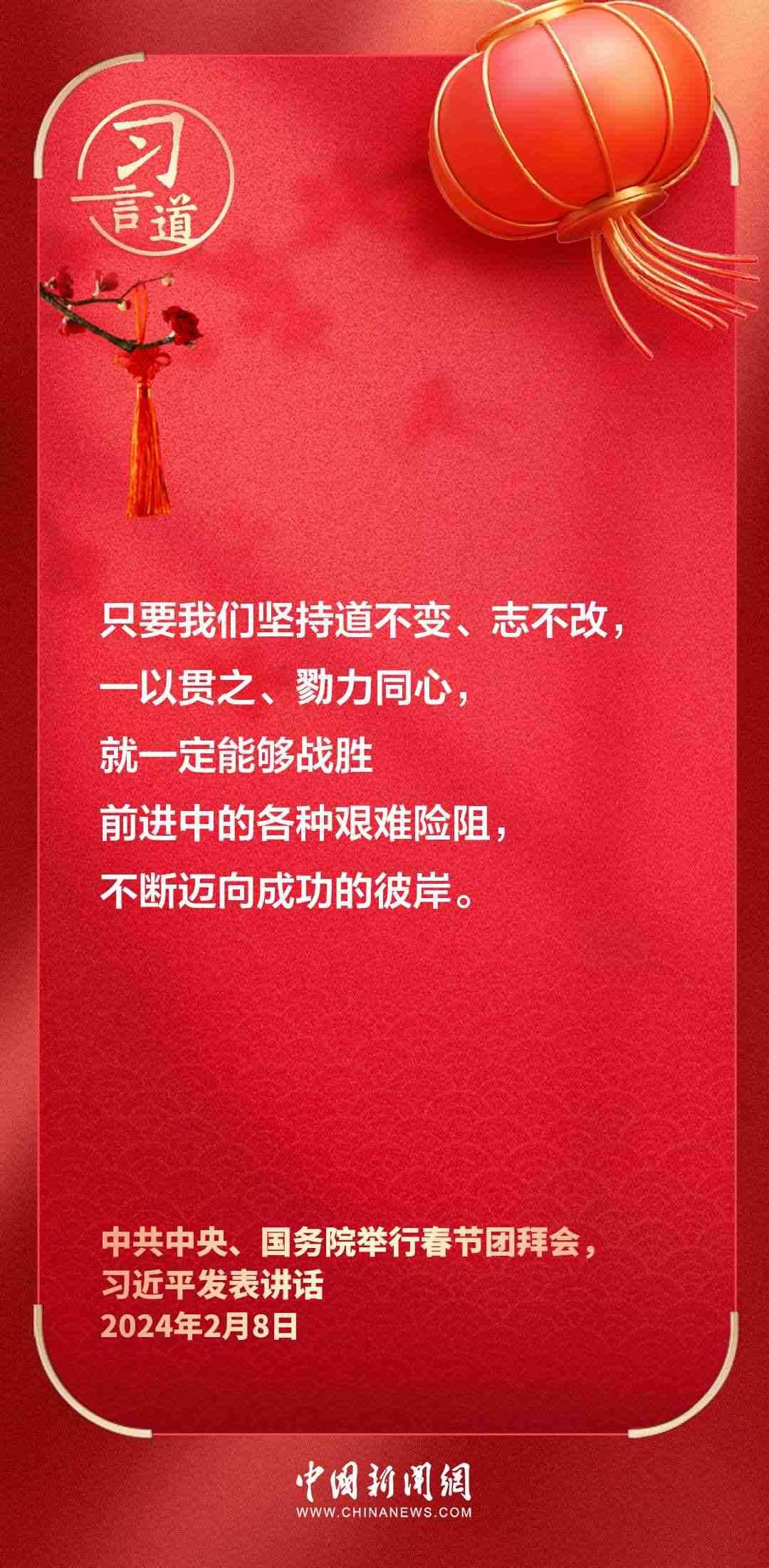 中共中央、國(guó)務(wù)院8日上午在人民大會(huì)堂舉行2024年春節(jié)團(tuán)拜會(huì)。中共中央總書記、國(guó)家主席、中央軍委主席習(xí)近平發(fā)表講話——