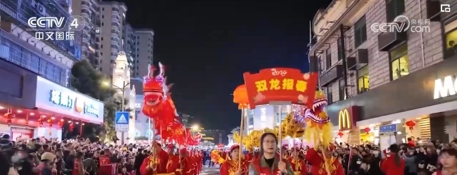 這幾天在廈門同安,盛大的傳統(tǒng)踩街民俗活動(dòng)與古城燈會(huì)同步開啟。舞龍、舞獅、腰鼓隊(duì)等巡游隊(duì)伍從同安城中心出發(fā),表演者們身著盛裝、手持道具,先后經(jīng)過(guò)同安鐘樓、同安縣衙舊址等地,與市民游客熱情互動(dòng)。