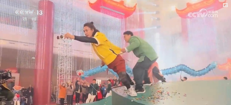 央視網(wǎng)消息:中央廣播電視總臺《2024年春節(jié)聯(lián)歡晚會》武術節(jié)目《爭春》由袁和平作為監(jiān)制,樊少皇、吳樾、此沙三位演員與塔溝武校的學員們,分為三支舞龍隊比拼武藝、以武爭春。節(jié)目中再現(xiàn)經(jīng)典武術招式,同時融入了更多生活化的情節(jié),一招一式剛?cè)岵?,盡顯春日里萬物競發(fā)勃勃生機。