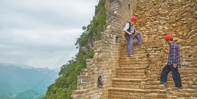 北京箭扣長(zhǎng)城修繕保護(hù)現(xiàn)場(chǎng)。馬文曉攝