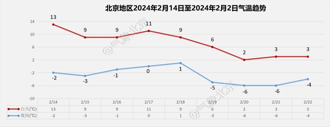 14日夜間:多云轉(zhuǎn)晴;偏北風(fēng)2級(jí);平原地區(qū)最低氣溫-2℃,山區(qū)最低氣溫-7~-4℃。