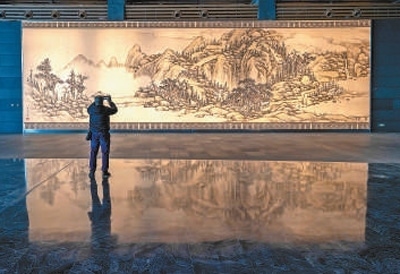 游客在北京大運(yùn)河博物館內(nèi)拍照留念。
