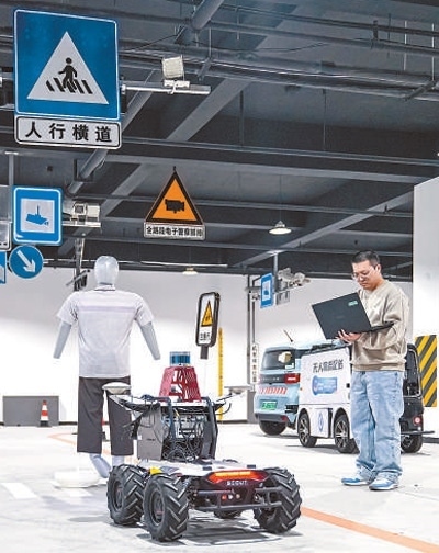 中國科學(xué)院雄安創(chuàng)新研究院內(nèi),科研人員在測試自動駕駛設(shè)備。
