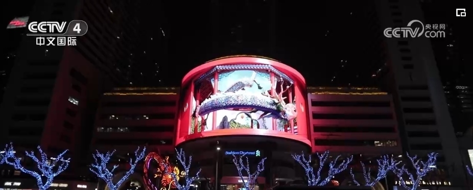 隨著夜幕降臨,在上海市南京西路這家商場戶外大屏,在裸眼3D技術(shù)的加持下,一條靈動(dòng)時(shí)尚的“光影巨龍”騰飛而出。同時(shí),上海南京西路商圈的多個(gè)地標(biāo)建筑,也開啟了春節(jié)燈光演繹。
