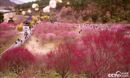 湖北十堰秦巴植物園里萬畝梅花盛開,漫山遍野如云似霞。