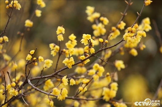 氣溫回暖,山東日照蠟梅花開,散發(fā)陣陣花香。