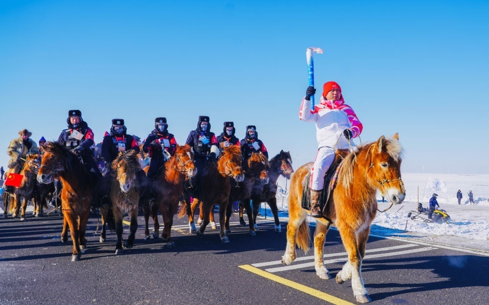 2024年2月3日,第十四屆全國(guó)冬季運(yùn)動(dòng)會(huì)火炬?zhèn)鬟f活動(dòng)在內(nèi)蒙古自治區(qū)呼倫貝爾市進(jìn)行,這是“十四冬”開(kāi)幕前的最后一次火炬?zhèn)鬟f。新華社發(fā)(西日呼攝)