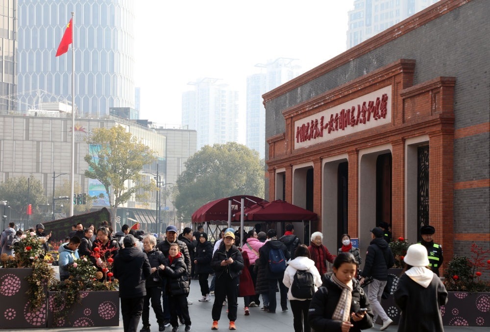 2024年2月10日,位于上海的中共一大紀(jì)念館舉辦賀新春活動(dòng),紀(jì)念館前游人眾多。新華社發(fā)