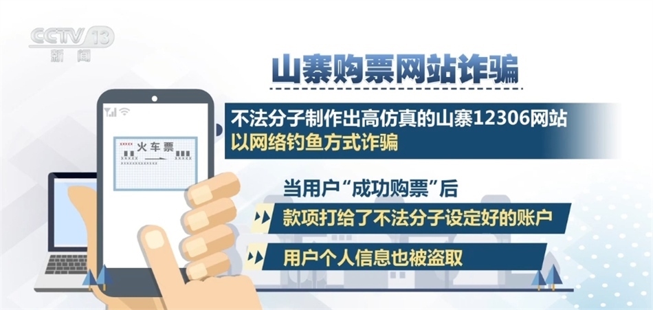 山寨購(gòu)票網(wǎng)站詐騙:不法分子制作出高仿真的山寨12306網(wǎng)站,以網(wǎng)絡(luò)釣魚(yú)方式詐騙,這些網(wǎng)站在頁(yè)面布局、域名上與12306網(wǎng)站非常相似。當(dāng)用戶“成功購(gòu)票”后,款項(xiàng)打給了不法分子設(shè)定好的賬戶,用戶個(gè)人信息也被盜取。