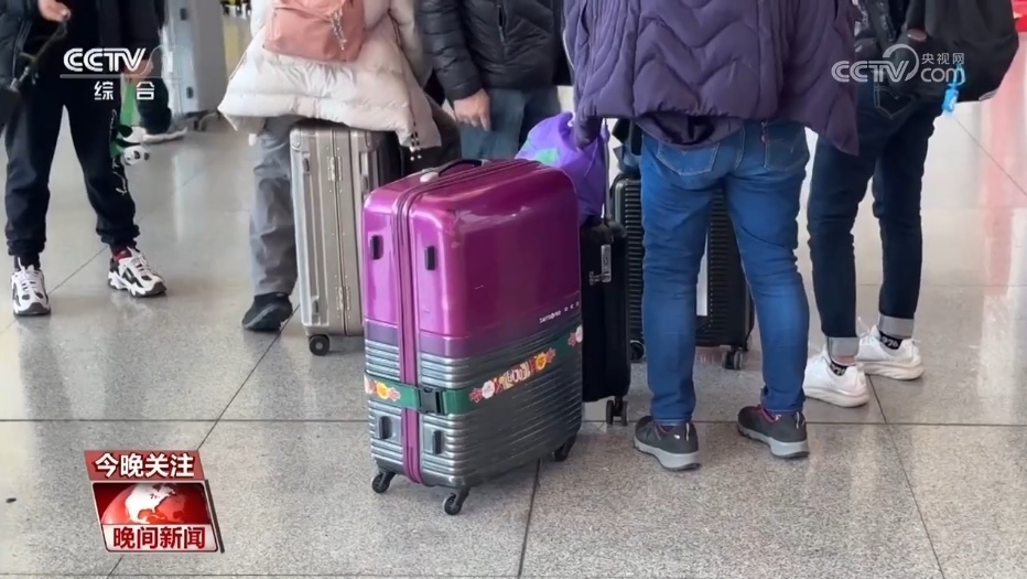 離家時的后備箱被裝得滿滿當當,行李箱也不例外。在各地的車站,旅客們大包小包提著行李,全國各地的土特產也在這里匯聚一堂。