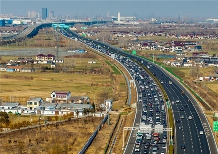 春節(jié)假期臨近尾聲,各地迎來(lái)返程高峰。圖為車(chē)輛行駛在京滬高速江蘇省淮安市淮安區(qū)境內(nèi)。