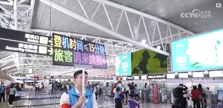 還有15分鐘登機(jī),這在平時(shí)不算晚??稍诔醢说某龈鄹叻謇铮绻麤]有志愿者的及時(shí)指引,旅客就很有可能錯過飛機(jī)。