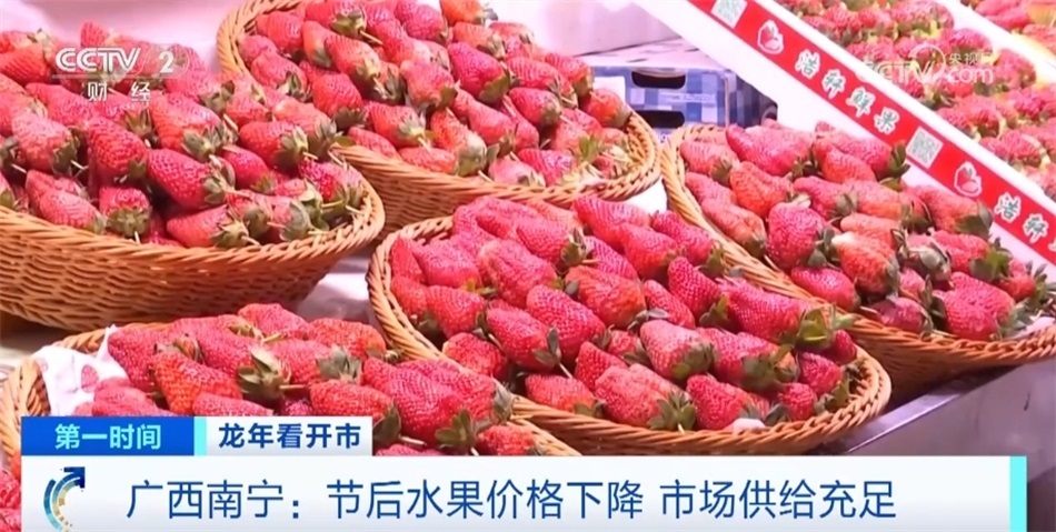 春節(jié)假期過后,在廣西南寧,記者走訪發(fā)現(xiàn)水果市場有所“降溫”,大家想要品嘗車?yán)遄?、草莓等水果正是好時(shí)機(jī)。