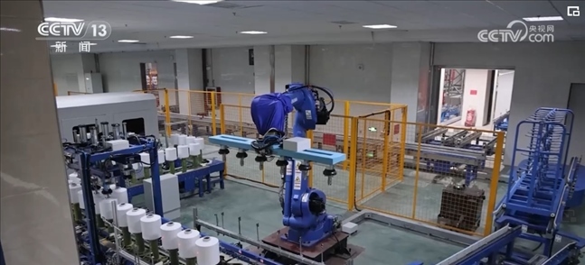 研發(fā)快速、制造智能,在浙江的一個錦綸生產(chǎn)車間,從原料配送、落筒、絲餅傳輸檢測、包裝和倉儲都已實現(xiàn)全流程智能制造,24小時開工。