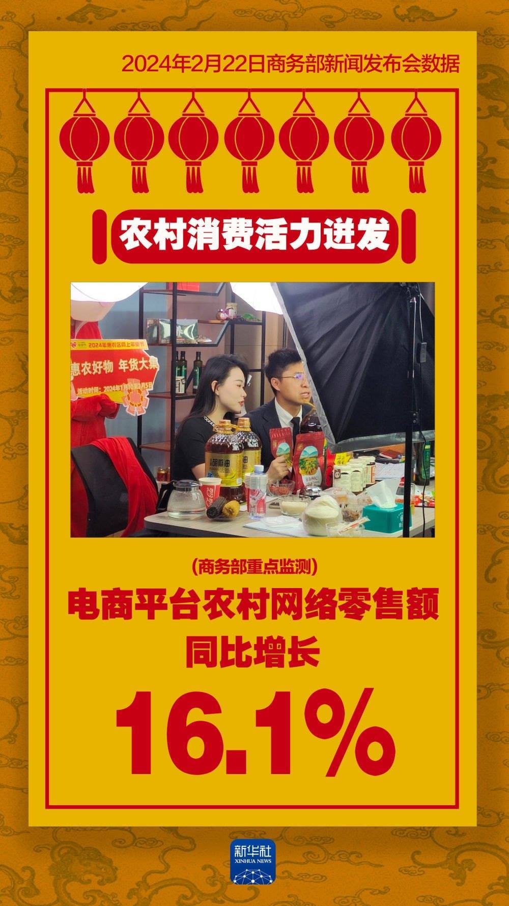 2月22日,商務(wù)部召開(kāi)例行新聞發(fā)布會(huì)。商務(wù)部新聞發(fā)言人何亞?wèn)|說(shuō),今年春節(jié)消費(fèi)市場(chǎng)年味濃、活力足、人氣旺,銷售較快增長(zhǎng),實(shí)現(xiàn)良好開(kāi)局。在新春消費(fèi)旺季和各項(xiàng)政策措施帶動(dòng)下,預(yù)計(jì)一季度消費(fèi)市場(chǎng)將呈現(xiàn)平穩(wěn)增長(zhǎng)態(tài)勢(shì)。