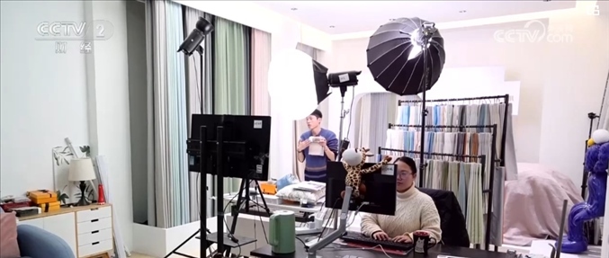 在當(dāng)?shù)亓硪患移髽I(yè)的直播間內(nèi),主播們正在嫻熟地介紹公司的窗簾產(chǎn)品。近年來,公司發(fā)力網(wǎng)絡(luò)直播業(yè)務(wù),線上訂單逐年增長,目前已經(jīng)占到了公司整體銷售額約65%。