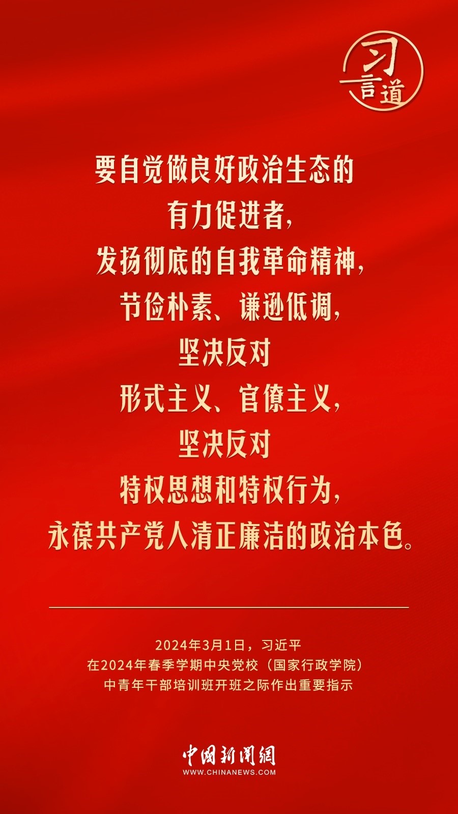 2024年春季學(xué)期中央黨校(國家行政學(xué)院)中青年干部培訓(xùn)班3月1日上午在中央黨校開班。中共中央總書記、國家主席、中央軍委主席習(xí)近平作出重要指示,他強調(diào)——